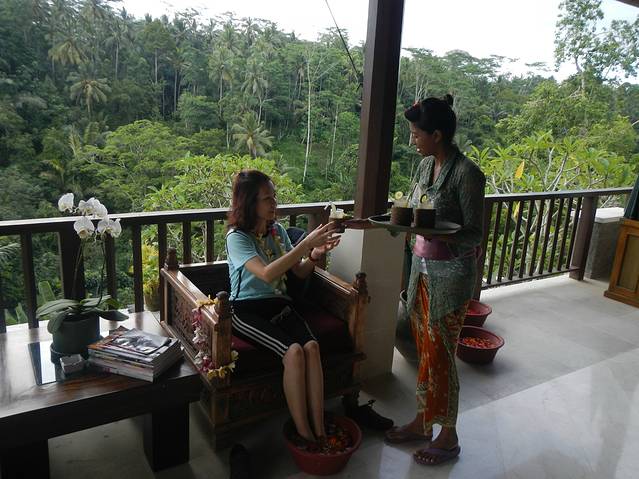 刚一进Alam Ubud 的门服务员即送上冰镇果汁和一串鲜花项链,让花香和果香瞬间通体环绕.....
