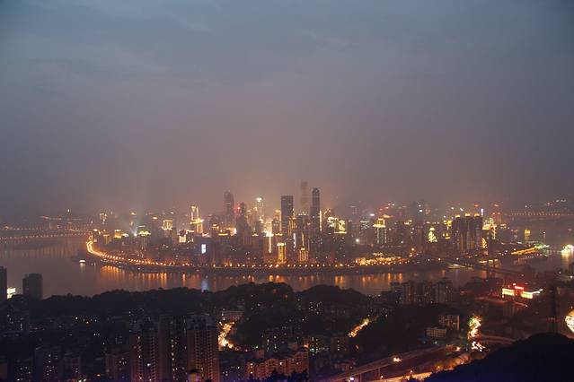 夜晚的重庆,天气貌似也晴朗了些许,小香港的名子不是白叫得,幸亏我带了三脚架,可以拍个夜景