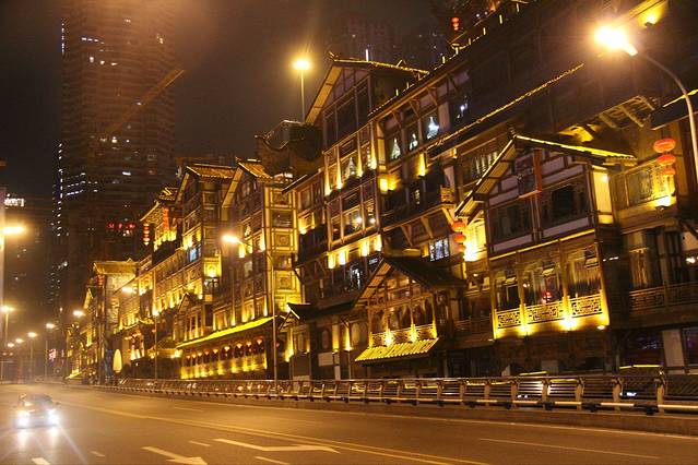 洪崖洞距离朝天门不远,其实本来时间不富裕了,就想快点赶去火车站,结果远远看到非常漂亮的一片建筑,必须跑过来看看