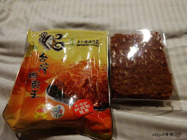 晚餐前在7-11取了钱,又买了点零食。这个杏仁猪肉干好好吃,又薄又脆非常香,分量也特别大。发现情境天黑后就没什么活动了,毕竟是山里,一个人不太敢天黑后乱逛,就早早就回到了酒店。好在有了台湾的娱乐节目,夜晚也完全不会无聊,我从7点多一直看到快12点才睡觉!