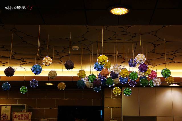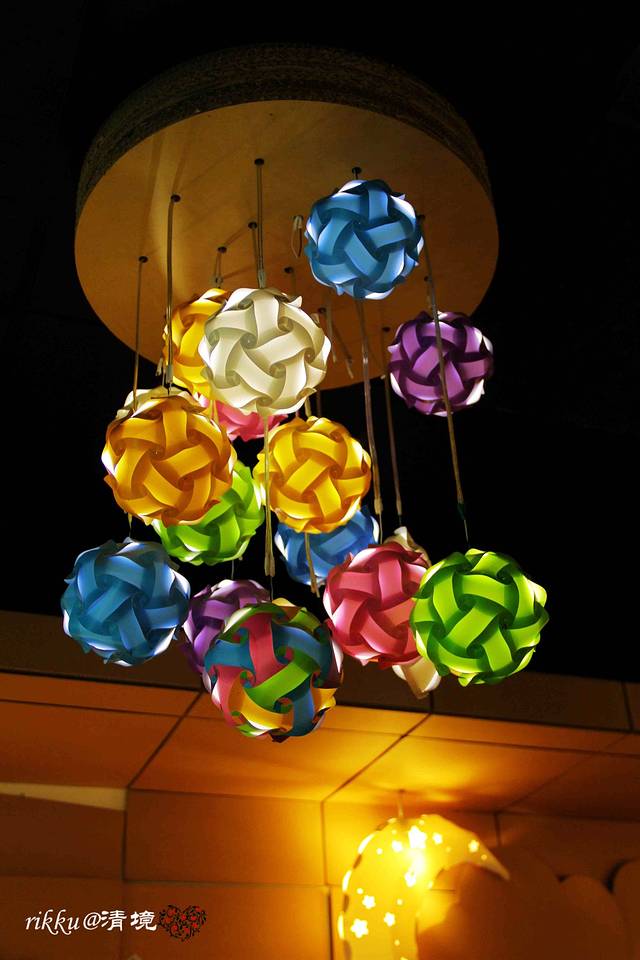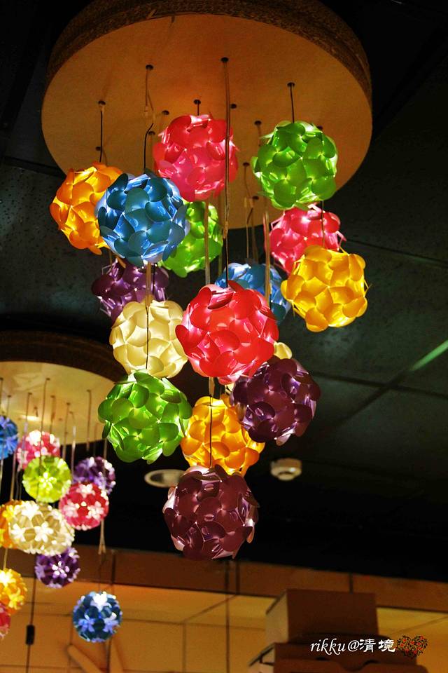 餐厅里也有彩色纸球灯