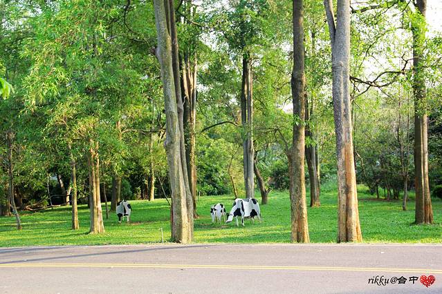 校园内都是大树,还有几只假奶牛,不知道那边是不是乳品小栈的方向。