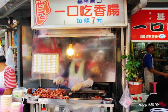 来基隆就是为了庙口夜市,这个夜市可是白天也营业的哦。从这里走到庙口夜市很近,不到十分钟的路程。两边的摊位非常整齐,每个摊位还有编号。虽然是中午,但也人声鼎沸。