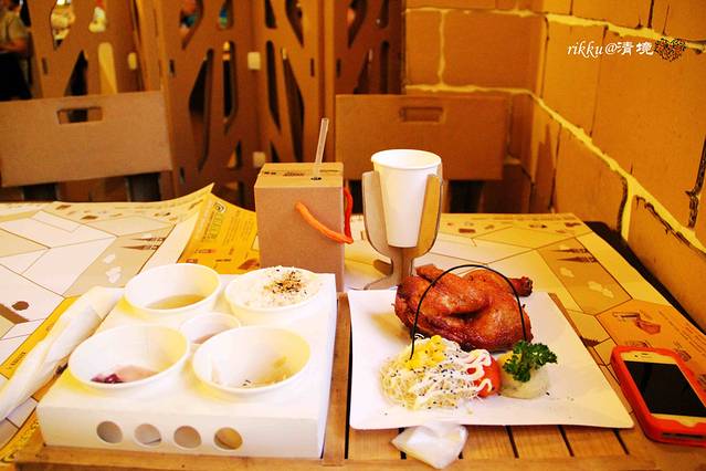 到纸箱王餐厅吃晚餐,杯子桌子椅子全都是纸做的