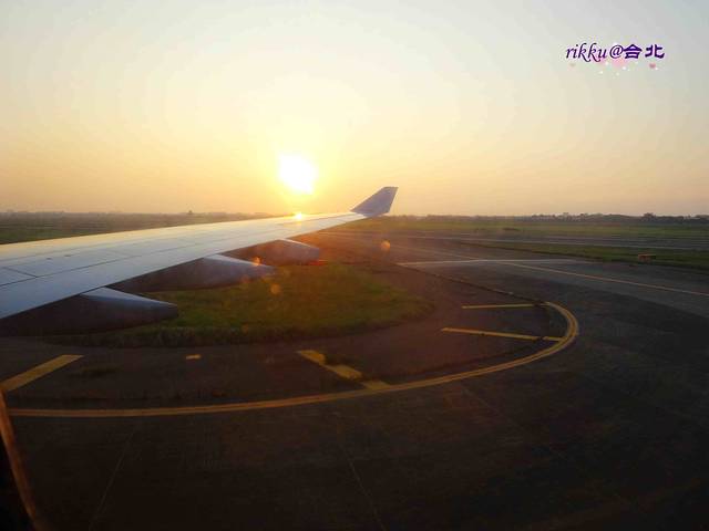迎着夕阳我们降落在了桃园机场。