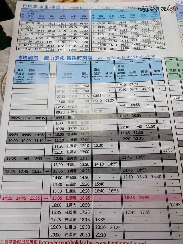 在台北捷运十分方便,去哪里都没问题。台中没有捷运,全程公交车,线路很多,景点都可以到达,但等待时间较长。台北至台中选择了速度最快的高铁,提前在某宝上找代理买了65折早鸟票。台中到清境农场直接坐干城站的南投客运可直达,还是比较方便的。