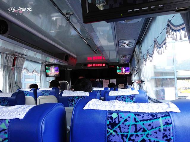 到了港口,过蓝色天桥到对面,在仁祥医院旁边的大型公交站搭乘去九份金瓜石的公车。我又忘记是几路了,不过车子会很明显的写明去往金瓜石,车身也是这些金九水的字样,很好辨认的~~大概十五分钟左右一班,依旧刷的悠游卡。