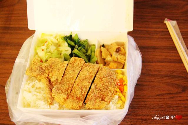 酒店对面买了个排骨便当,120台币,味道不错