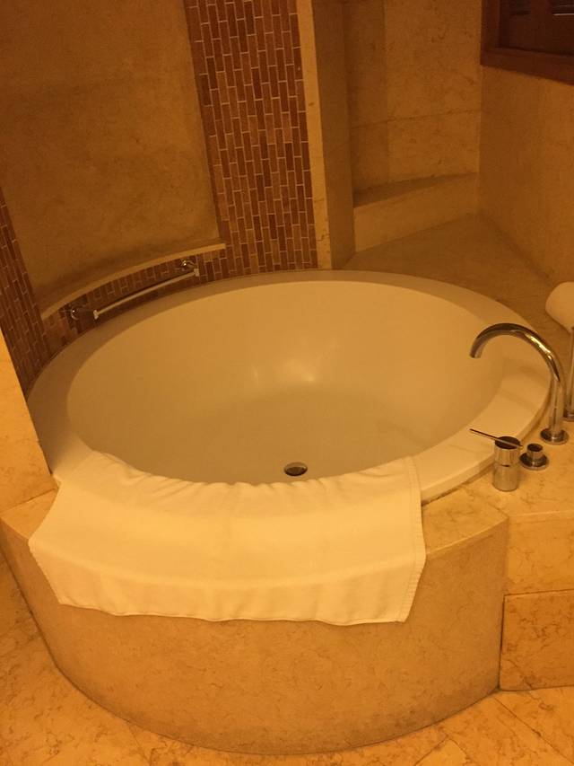 房间内最亮眼的除了那张大床就要数浴室里的大浴缸了,圆圆的形状很好看,躺在里面泡个热水澡非常的惬意。