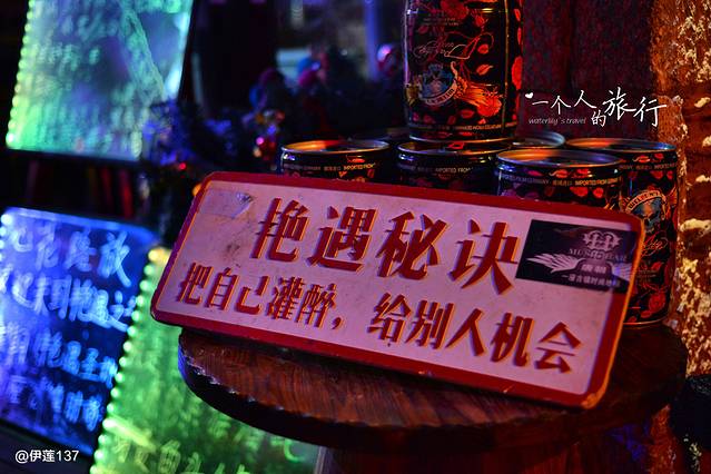 哈哈,很喜欢这句话,为了这句话,我打算进去艳遇一下了。可是,这里竟然没有鸡尾酒,只有一打打啤酒,或者一瓶瓶的红酒,我一个人喝这么多绝对是昏醉的节奏啊!还是算了…