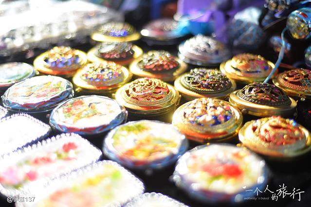 路边售卖的精美饰品,在阳光下闪闪发光。