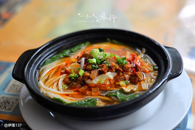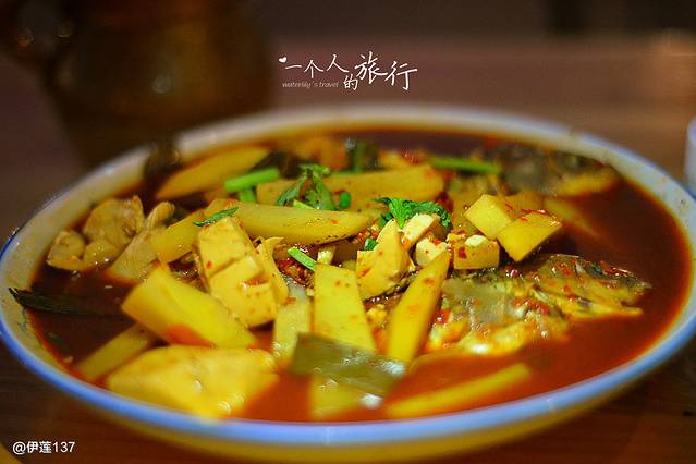 一个人旅行,找吃是非常有难度的事,特别是像大理的餐馆,点菜的话份量太大一个人吃不完。徘徊了一会,终于在洋人街找到了一家吃酸辣鱼的,店名就叫砂锅鱼(囧),有小、中、大的份量可以选,很人性化。