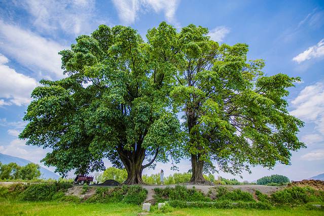 我们的目的地是这棵夫妻树,两棵树相拥在一起,天蓝,树绿,云白,风清,如春光般美好。