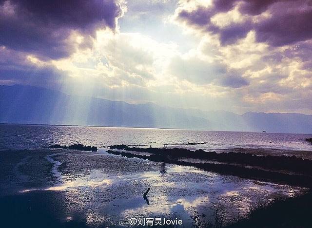傍晚6点,天空出现了美丽的一束光,这是洱海的奇观,我也是第一次看见这么美丽的景象。