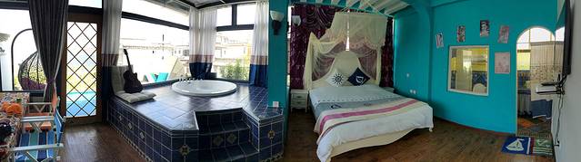 我订的房间是罗马假日,还有很多房型可供选择,根据自己喜好选择就可以了,价格在500-1200之间,最贵的好像是叫圣托里尼的套房。
