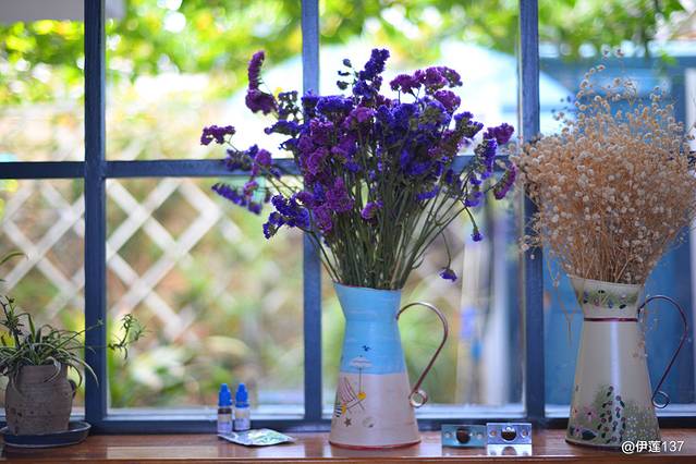 窗台的勿忘我和满天星