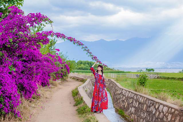 快到【双廊】的路上,发现了一大波三角梅,在阳光下盛开得正灿烂。