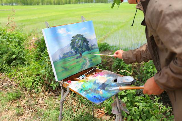 路上遇到在写生的画家,太美了!眼前的美景都收在画家的笔下。