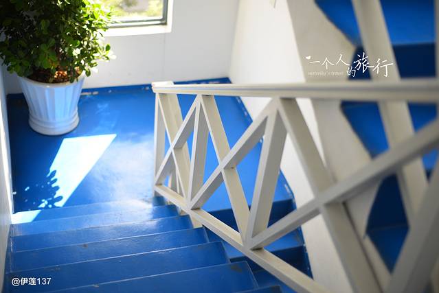 楼梯都是蓝白的配色,太美了!!真的以为自己就在希腊!