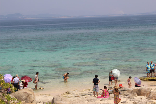 休息够了,到人海中享受一下蜈支洲的海水浴,玩够玩累,坐船回家(客栈,呵呵)