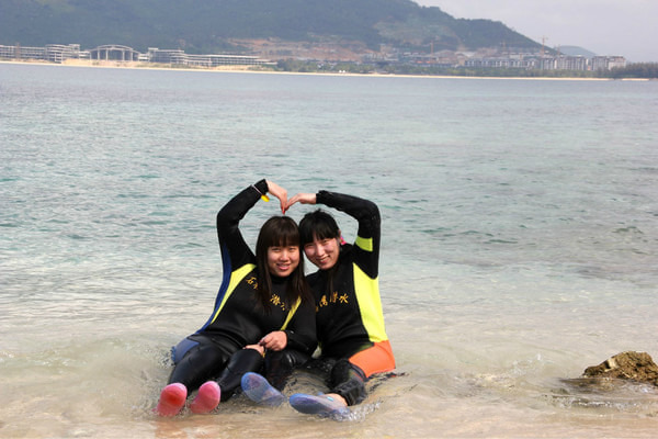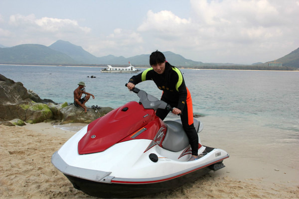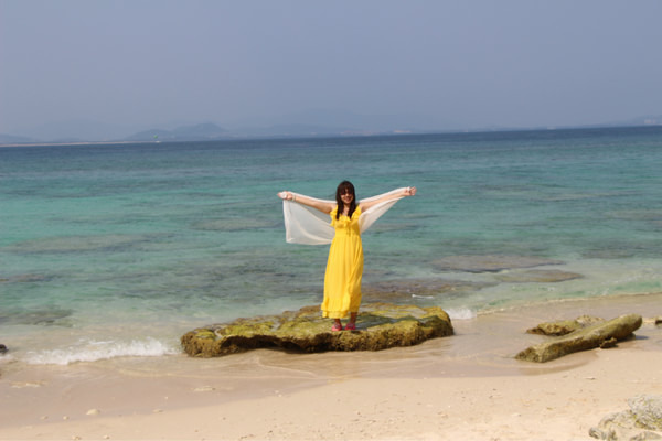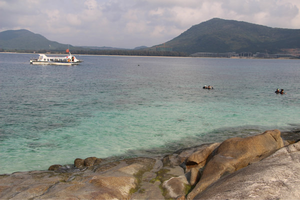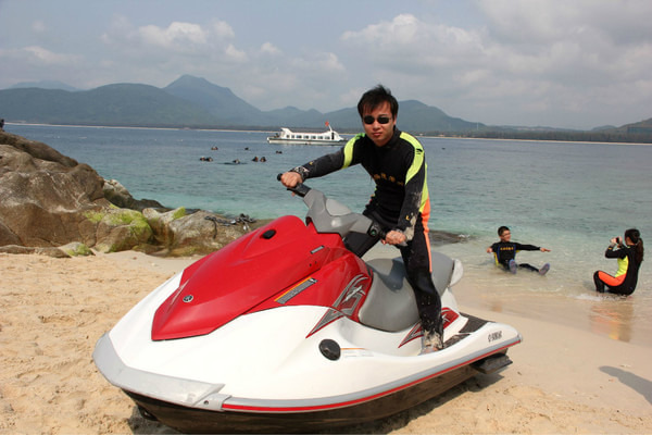 清晨7点10分,我们成为第一名上车的户外成员,小马哥热情的招呼我们,位置随便选,这就是传说中的小马哥,真的很热情。一个多小时的车程,并不寂寞,小马哥介绍海南的风土人情,从椰子到槟榔再到百变方巾,呵呵,石梅湾到了。快艇上岛,真的挺快的,5分钟吧,还没做够就到了。