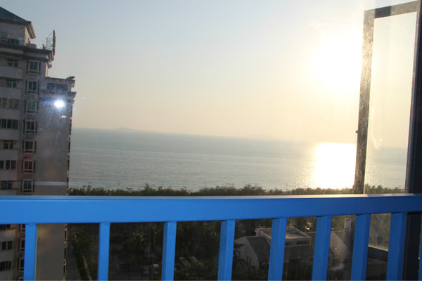动车的风光 ,抵达三亚,入住碧海天晴旅店,两室一厅海景房,我们住的13楼