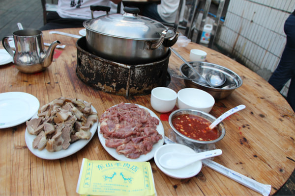 晚餐东山羊(鸿港市场二楼)人那较多啊 生意好啊 1锅骨头 卖1000 你没看错 很多人在吃 有钱人 难道说我太穷了 呵呵 总体印象:环境很朴素 露天 味道和北京的涮肉根本无法比 切得很厚 说是没冻过现杀现吃