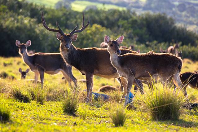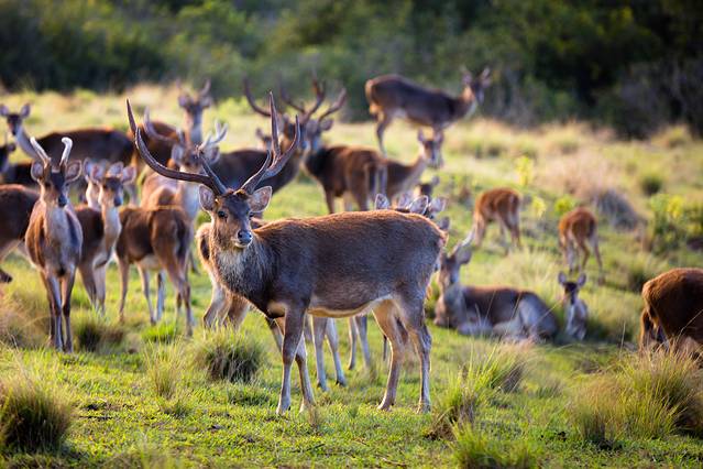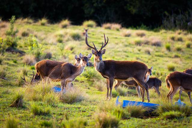 这些有可能是麋鹿的家伙紧盯我们,我们也纷纷拿起长枪短炮,两批人马就这样对恃着,突然间领头的雄鹿大叫一声扭头就走,鹿群纷纷跟随头鹿散去。