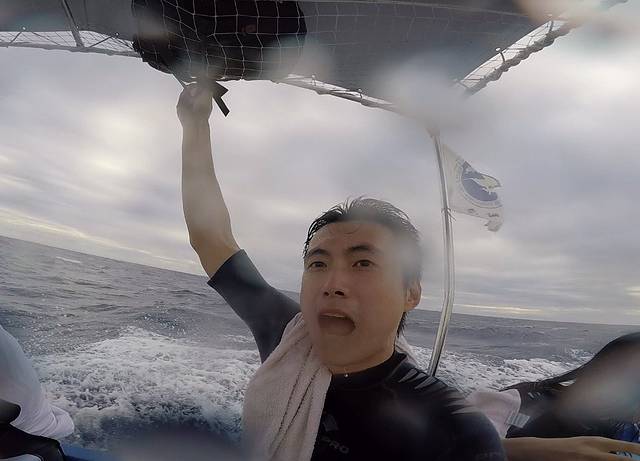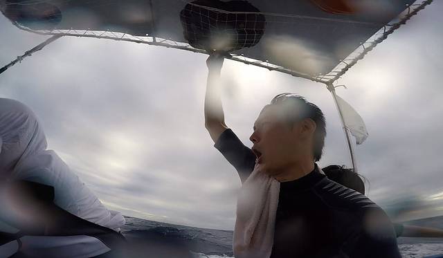 随之而来的是狂风大浪,整条小艇充斥着小伙伴们的惊声尖叫。。。顶着风浪还要保护一堆摄影器材真是一件费力的事。