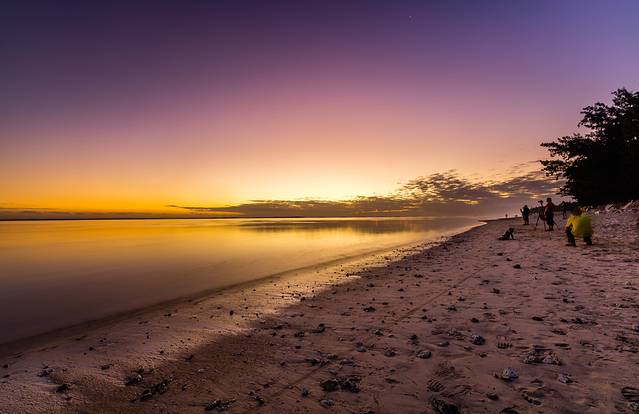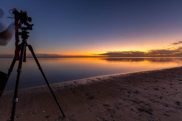 当然这里要指出的是这片海滩外围有防浪堤,所以这里的海浪很小,长曝后显示出像溪水这般的水景。