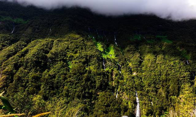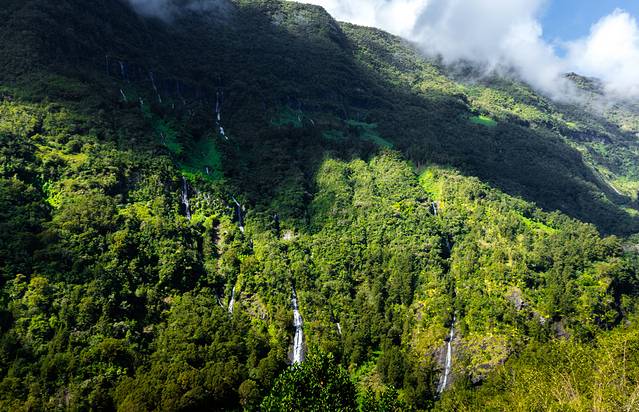 这里是火山喷发熔岩流经的区域,终年细雨绵绵。留尼汪火山时不时会小规模喷发一次,每次岩浆都会往东面缓缓的流向大海。