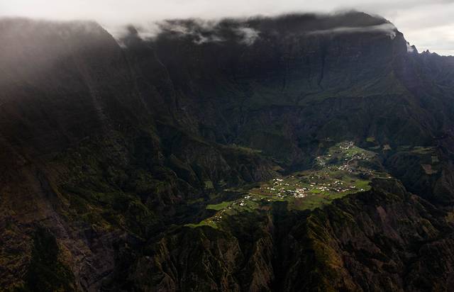 在空中可以看到一些建立在冰斗内与世隔绝的小村子,这些村子里的人除了自己搬进去的以外,更有早期逃跑的奴隶后代,逃进山林里隐居起来,包括岛上三座冰斗都是以当时逃跑的奴隶命名的。