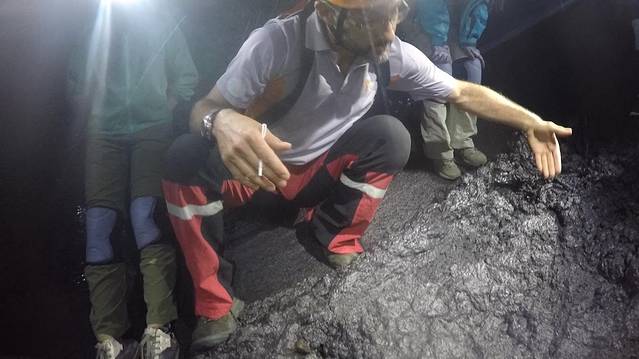 在隧道里向导会告诉你一些关于火山熔岩的知识。比如隧道是怎么形成,是由于最上面的表层遇冷后先凝结,而下面的还在流动,等底下也凝结后就形成了这样的地洞。