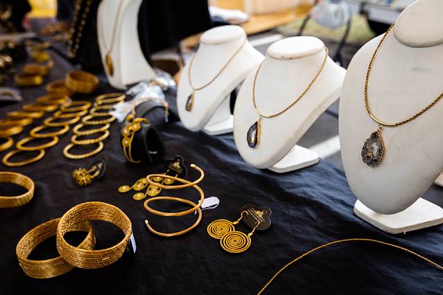 在留尼汪有一个集市你不得不去,那就是位于圣保罗的“周末集市”。照片里的是当地艺术家用一种叫黄金草植物制作的首饰,价格不菲哦最小的也要20欧左右