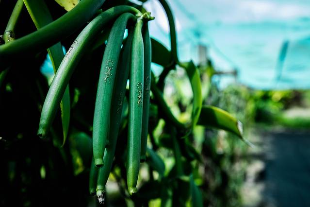 香草不言而喻是留尼汪最著名的特产。照片中绿色的就是还未采摘下来的香草,上面刻着种植人员的名字。我们来到了一家农场,除了卖香草还有很多香草制品,比如盐,糖,咖啡,香草食用液体,香草朗姆酒等等一些。