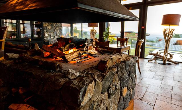 位于酒店大堂的烤炉,在寒冷的半山腰上听着劈劈啪啪的声音感受着暖流。