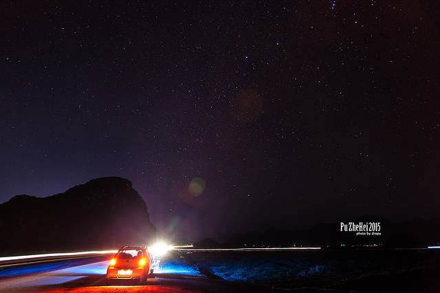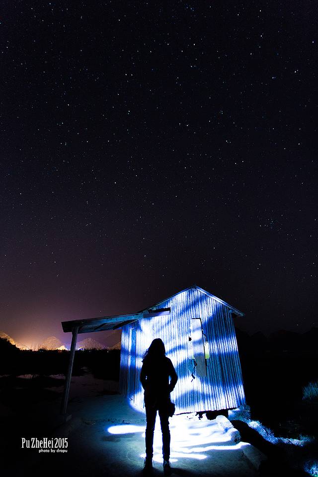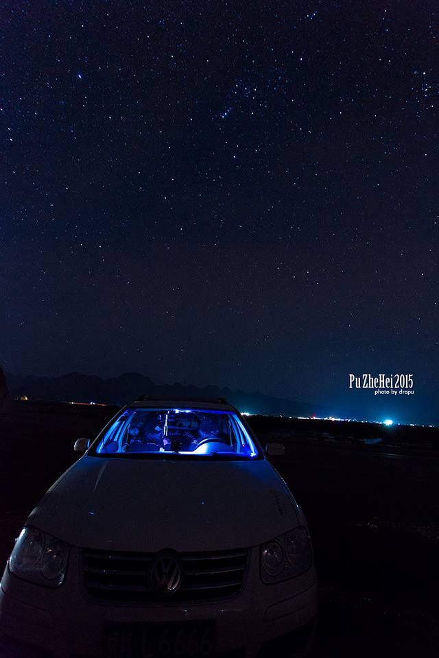 吃完了回酒店洗洗准备睡,媳妇说,你不是要拍星星吗,我说没带快门线,媳妇说,你别后悔啊,好不容易来一回。。。我犹豫了一下,唉,没快门线就单纯的拍星星吧,走!