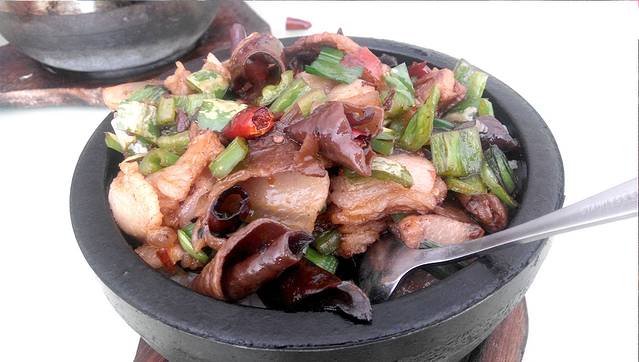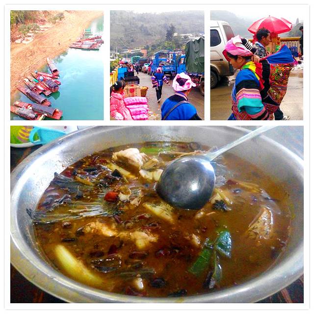 跟着导航一路的颠簸,最后下午将近五点在五龙外的小镇遇上赶集,唯一能通行的桥让赶集的人群占领了,只好在旁边找地方先吃晚餐再看看,就近停好车,点了二斤多酸菜鱼,就让一路的怨气化作惊人的食欲吧!