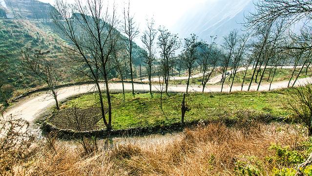 车不多,路虽然是土路,但是还算平整,小车通过没有问题,就是二十四道拐转起来有点烦。