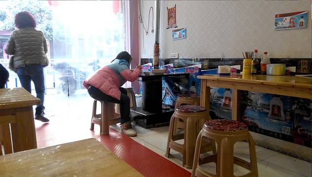 早上吃早点的小店,旁边吃米粉的小美眉姿势很duang吧,哈哈~~