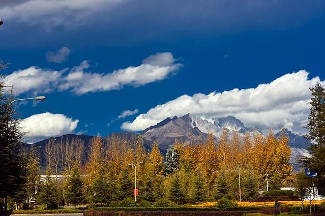 美丽的玉龙雪山,掩映在蓝天白云之中。