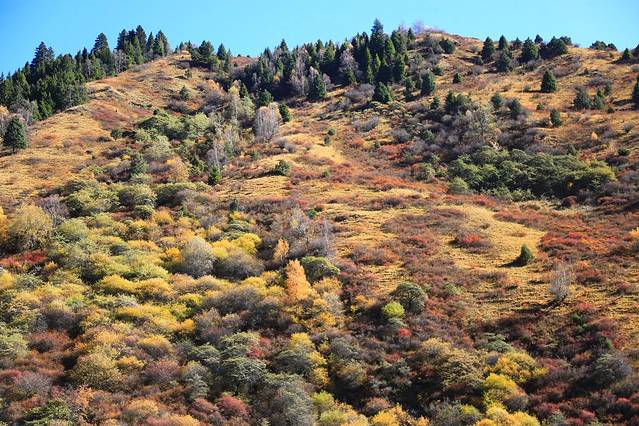 去年的10月初去了川西毕棚沟和九寨沟,那里的美让我陶醉痴迷,只是那时候去得早了一点,米亚罗的红叶还不怎么红,朋友王彩霞看到我发的图片这么漂亮,就约我再去川西,她本来想去九寨沟的,九寨沟我已经去了两次,一次是10几年前春节去,一次是去年秋天去的,九寨沟的秋色是很美,我看到朋友圈里其他朋友在夏天去九寨沟拍的照片,跟我秋天去九寨沟拍的照片景色完全没得比,夏天色彩比较单调不像秋天色彩斑斓那才叫童话世界。
