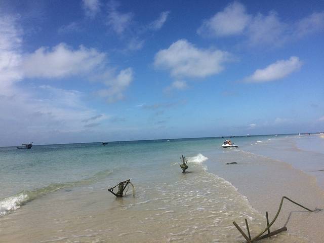 前面有人在玩沙滩车,摩托艇,,,,