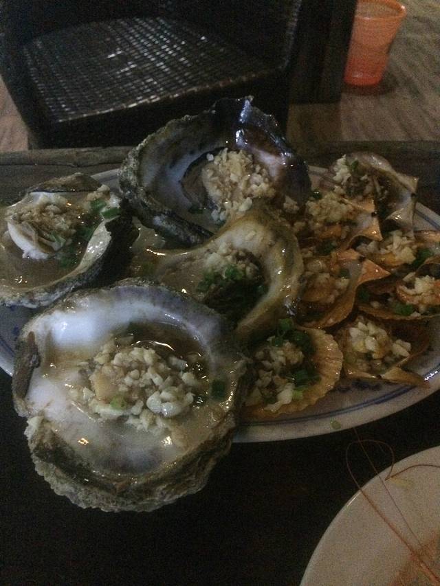 涠洲岛上的第一晚,,个大的生蚝,,,菜市场有很多海鲜,,选都选不过来,,重点是很新鲜,,,