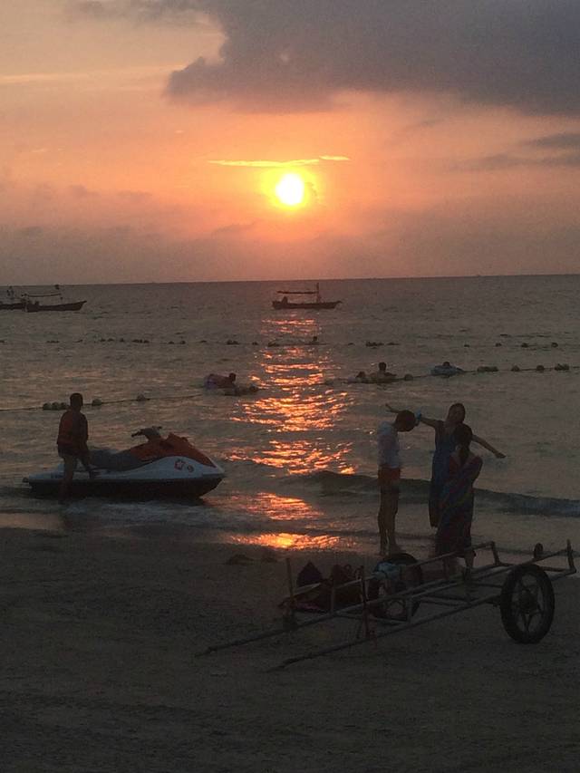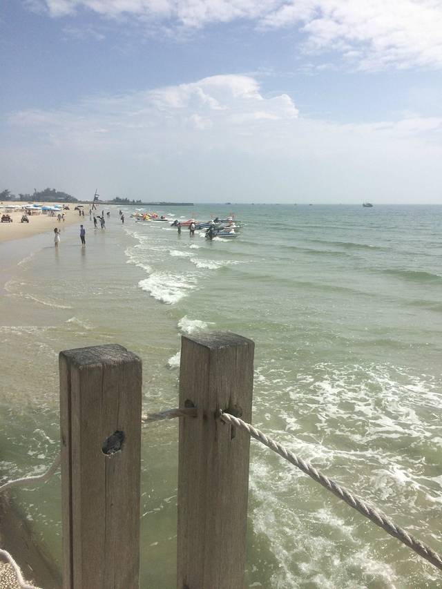 刚到海边的时候很兴奋,,沿着海滩一直往银滩方向走啊走,看看海边钓鱼的人儿,站在沙滩上望着海平面发发呆,,没有多久,就被晒黑了,本来还想一直走到银滩正门那里在回来,可是实在太热啦,就回酒店休息了,下午准备换好衣服,在出来游泳。