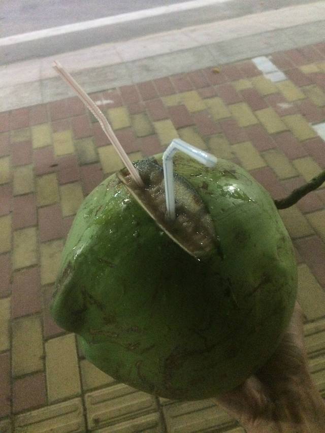 吃完饭来个椰汁,解解渴,,,路边的烤生蚝,很好吃,,,