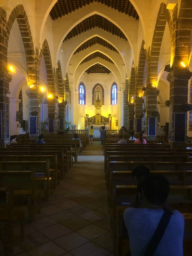 这是教堂的后院, ,嘿嘿,,想想在离海岸这么远的岛上还有这样的建筑实属不易,,,旁边的树就是菠萝蜜,没想到长那样,第一次见,,,,,