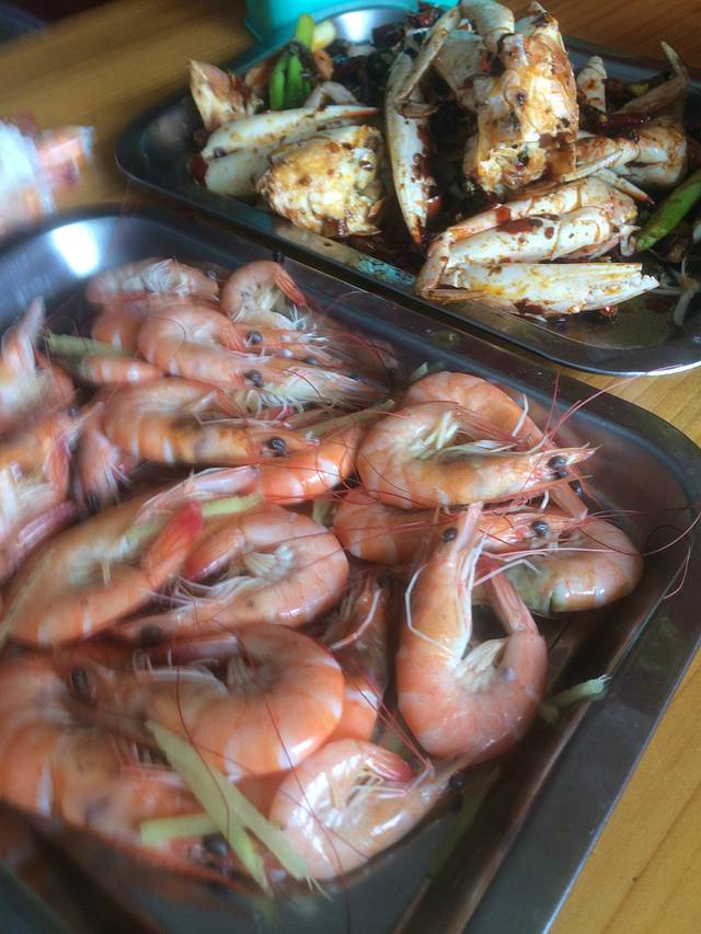 虾和螃蟹都是自己去菜市场买的,然后到饭店找老板加工的,,也不知道买的好不好,但是每个都是活蹦乱跳的,很是放心。