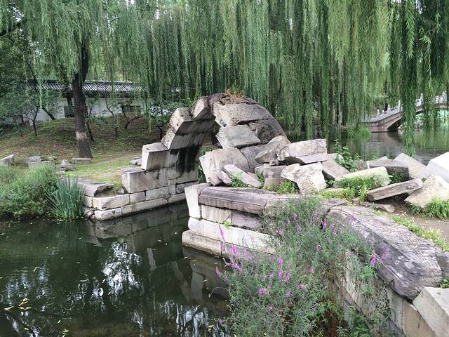 圆明园盛时,园内有近200座桥梁。此桥为昔日敷春堂西宫门外的一座跨溪石拱桥,如今只残存多半个单孔石拱。