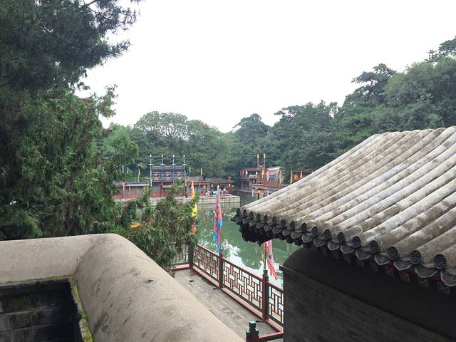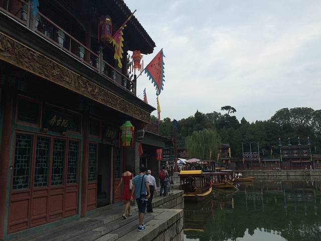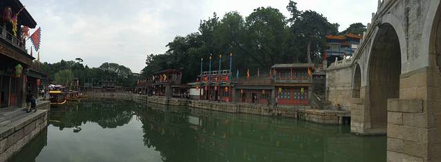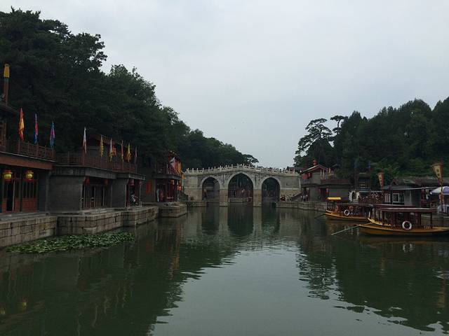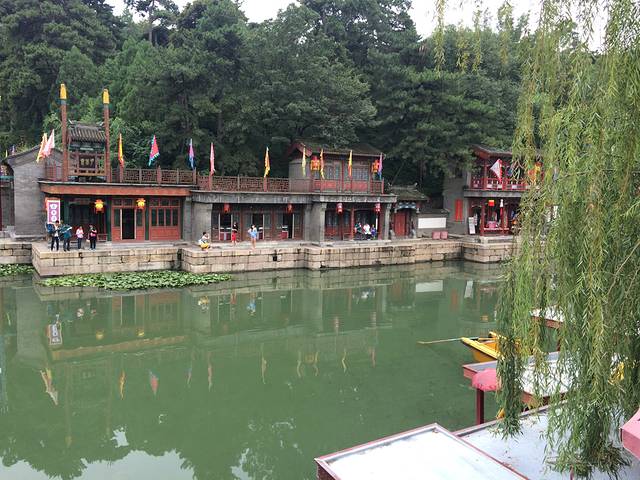 第一站:苏州街 苏州街,地处我国至今保存最完整的大型皇家园林——颐和园的后湖,是一个仿江南水镇而建的买卖街。原型为白居易任苏州刺史时督造的苏州第一街——七里山塘。清漪园时期岸上有各式店铺,如玉器古玩店、绸缎店、点心铺、茶楼、金颐和园苏州街银首饰楼等。店铺中的店员都是太监、宫女妆扮。皇帝游幸时开始营业。后湖岸边的数十处店铺1860年被列强焚毁。现在的景观为1986年重修。 苏州街既是一处历史人文景观,又是一处独特的自然景观,列于宫苑之中,小巧玲珑,依山面水,宛如江南图画点缀在后山后湖的建筑轴线上,更加衬托了后湖的宁静典雅,把城市山林集中形象地再现出来,成了乾隆皇帝的母亲最喜欢游玩之处。
